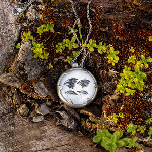 In honor of Darwin, evolution, and the fascinating study of life, we have created a beautiful, unique pendant that displays the first evolutionary tree on one side, and Darwin's Finches on the other. Using hand-weathered pewter and glass, the pendant measures a bit over 1 inch in diameter and hangs on a steel chain. You may choose the chain length: long (24" - good for wearing over shirts and sweaters), or short (18" - good for showing off the pendant on the chest). The pendant is water-resistant, but not water-proof, so do take it off before diving in the Galapagos.