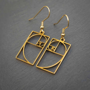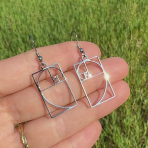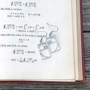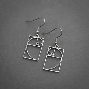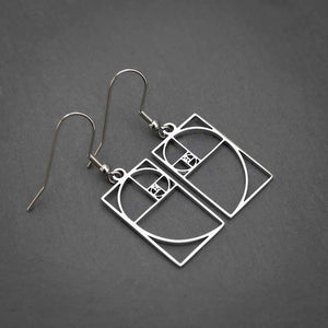 These silver or gold colored steel earrings display the mathematical elegance of the Fibonacci sequence. Made from non-tarnishing metal, they are both delicate in design and very strong. They are hung from gold plated or stainless steel ear wires. For the ultimate classy intellectual earrings, look no further.