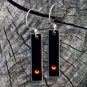 These earrings are created using an innovative process using aluminum and high-color images. The ear hooks are sterling silver and the earring elements are made from hand-worked aluminum for a unique piece of science-inspired jewelry.