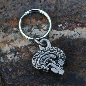 What better way to keep track of your keys than with your extra brain? This anatomically correct brain hemisphere keychain displays a wide range of brain features, including the: corpus callosum, thalamus, hypothalamus, medulla oblongata, cerebellum, brainstem... and more. Small batch cast in pewter from a hand carved model, this keychain will be the envy of all the neuroscientists on the block.