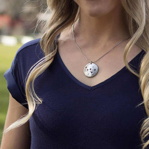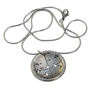 This pendant is small-batch cast from pewter and has been hand hammered and weathered for an antique look. The stars are accurately placed, based on star maps, and are cut all the way through the pendant. The back features the right ascension and declination, reversed to match the stars. As far as we know, this is the only constellation pendant in the world designed to this level of astronomical accuracy. The pendant measures 3cm in diameter and comes on an adjustable brown leather cord.