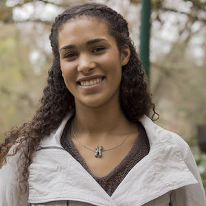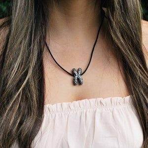 The antiqued pewter pendant has a satisfying, but not excessive weight. It is the most unique and true-to-science chromosome necklace around. Great for wearing to the lab, classroom, conferences, and presentations. Comes on your choice of a steel wire cord or an adjustable black leather cord.