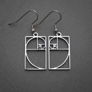 These silver or gold colored steel earrings display the mathematical elegance of the Fibonacci sequence. Made from non-tarnishing metal, they are both delicate in design and very strong. They are hung from gold plated or stainless steel ear wires. For the ultimate classy intellectual earrings, look no further.