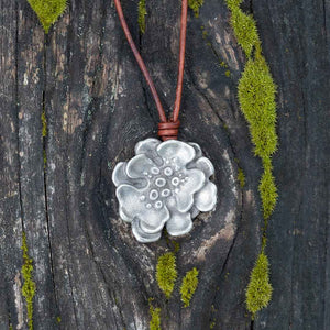 The small-batch cast pewter pendant accurately represents the anatomy of a lichen. On the front is Apothecea, perithecia, and isidia -- several of the lichen's reproductive structures. Part of the lichen is cut-away on the side, allowing you to see the algal cells enmeshed in fungal filaments.