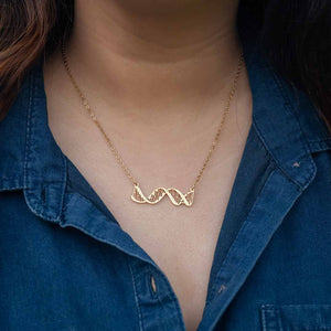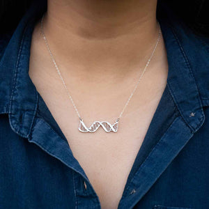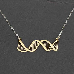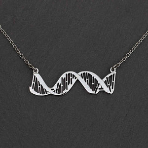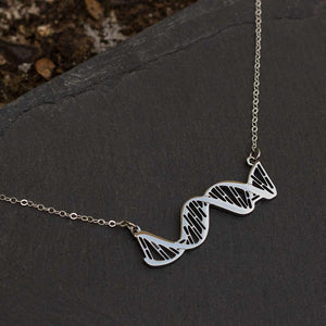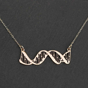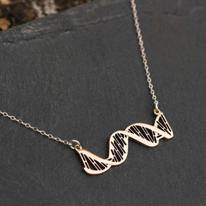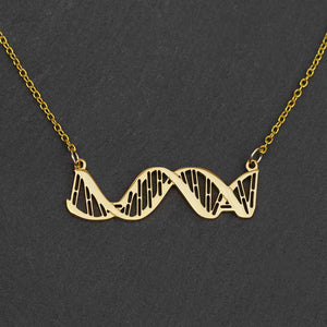 If you work with, study, or have genetic material, then this DNA necklace is for you. The highly detailed DNA pendant is strung in-line with the chain shows the major and minor grooves, as well as a representation of base pairing. It also has tiny engraved details to accurately represent the right-handed direction of the double helix twist.