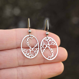 From dendrite to axon terminal, the design is structurally correct, and includes details like the nucleus and Schwann cells. These detailed earrings measure about 1 3/4" from the top of the hook to the bottom. Choose either polished silver steel neurons on stainless steel hooks or gold plated steel neurons on gold plated hooks. Both metal color options are very durable and will never tarnish.