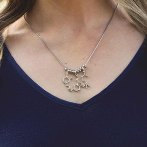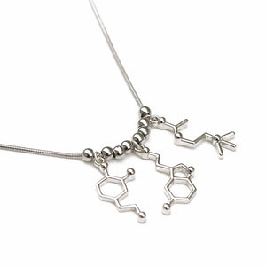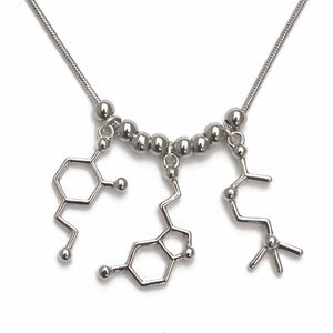 Love, joy, and learning...does it get any better than that? This beautiful neurotransmitter necklace includes dopamine, serotonin, and acetylcholine. It's the perfect scientific symbol of a balanced, happy life.