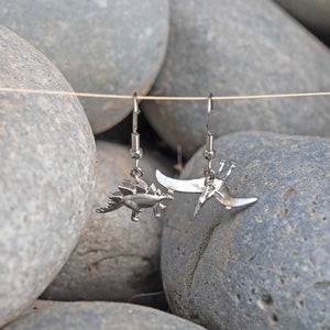 Paleontology enthusiasts, you've come to the right place! Straight out of the Jurassic, these adorable stegosaurus and pterodactyl earrings make the perfect finishing touch to any outfit. Double-sided and highly detailed, these little rhodium plated dinosaur / pterosaur friends are hung from stainless steel hooks. Choose a matching pair, a stegosaurus + pterodactyl pair, or one pair of each to mix and match!