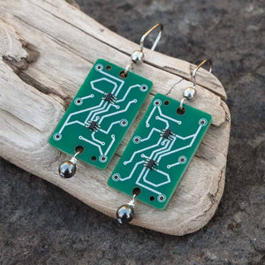Worn as jewelry, the SR latch becomes a quiet celebration of intentional design, foundational knowledge, and the power of a single stored bit. Choose your favorite color from green, blue, purple, and black circuit boards. The earrings measure 4.5cm or 1.75in from the top of the stainless steel hook to the bottom of the Swarovski crystal pearl. Breadboard not included. ;-)