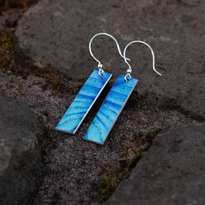 The ear hooks are sterling silver and the earring elements are made from hand-worked metal using an innovative process involving aluminum and high-color images.