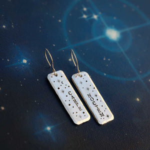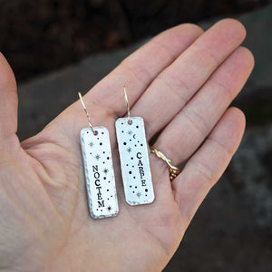 These rustic earrings are hand-stamped with the Latin for "seize the night." May your nights be memorable and filled with sparkling stars!