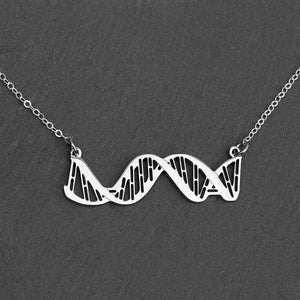 If you work with, study, or have genetic material, then this DNA necklace is for you. The highly detailed DNA pendant is strung in-line with the chain shows the major and minor grooves, as well as a representation of base pairing. It also has tiny engraved details to accurately represent the right-handed direction of the double helix twist.