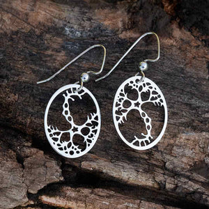 To the casual eye, one of these earrings might look like a stylized tree. After all, there is a reason that "dendrite" was derived from the Greek word for "tree." The opposite earring in this cutely matched pair, however, is impossible to miss!