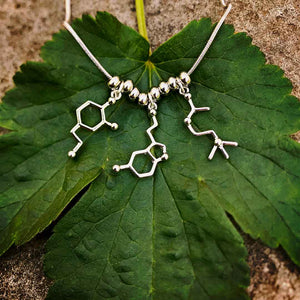 Love, joy, and learning...does it get any better than that? This beautiful neurotransmitter necklace includes dopamine, serotonin, and acetylcholine. It's the perfect scientific symbol of a balanced, happy life.