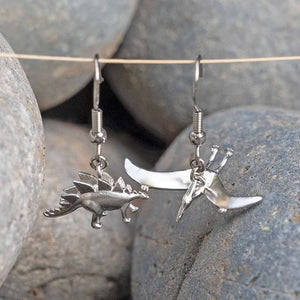 Paleontology enthusiasts, you've come to the right place! Straight out of the Jurassic, these adorable stegosaurus and pterodactyl earrings make the perfect finishing touch to any outfit. Double-sided and highly detailed, these little rhodium plated dinosaur / pterosaur friends are hung from stainless steel hooks. Choose a matching pair, a stegosaurus + pterodactyl pair, or one pair of each to mix and match!