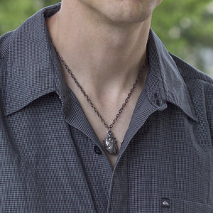 This pewter anatomically correct heart necklace is edgy, creative, romantic, and extremely scientifically accurate. Unisex styling and an excellent gunmetal chain give it a vaguely steampunk flare. All details are meticulously correct, including the aorta, vena cava, pulmonary arteries and veins, and the finely branched coronary blood vessels. Small batch cast from genuine pewter and given an antique finish, this pendant is hung on your choice of an adjustable black leather cord or an 18 inch or 32 inch heavyweight gunmetal chain.